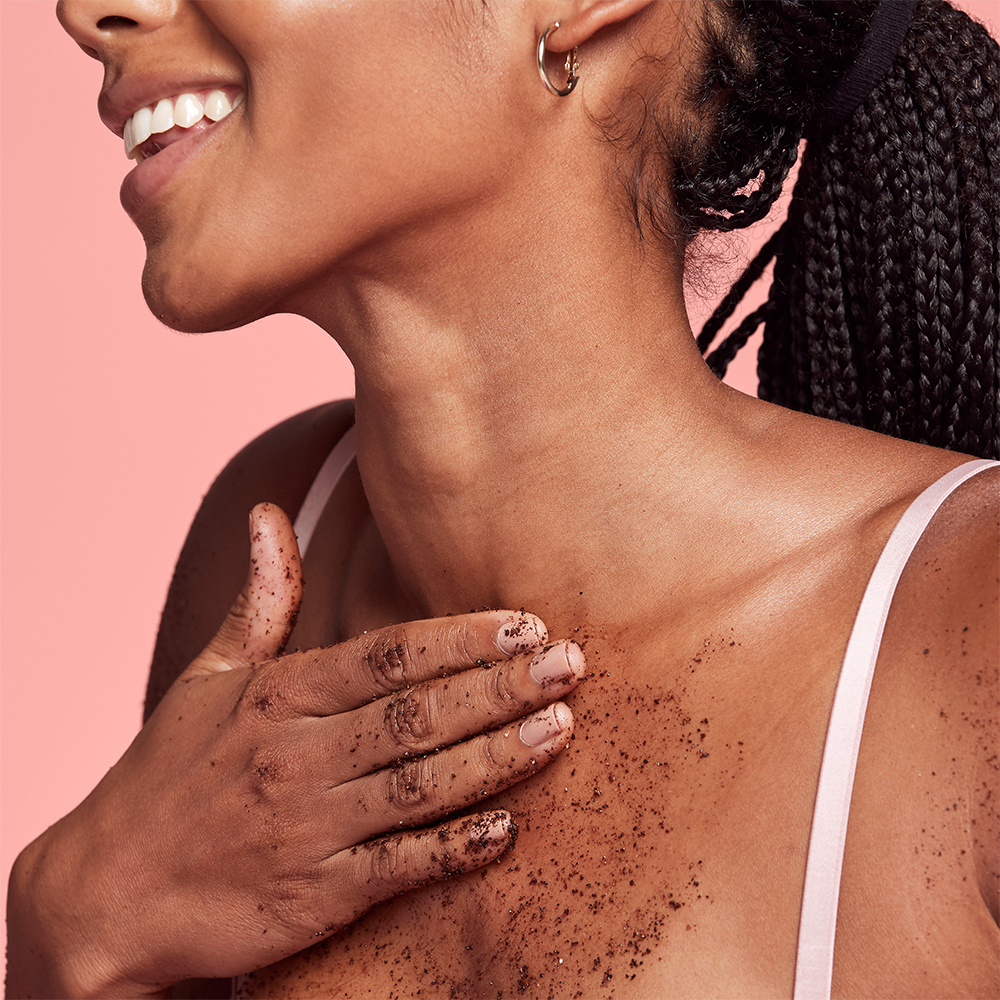 Get naked, and get in the shower. Once your skin is wet, cover your body in my Original Coffee Scrub. Scrub in circular motions for a few minutes, from top to toe. Focus on areas that want extra attention by scrubbing them for longer: scars, stretch marks, breakouts or cellulite. Rinse off, towel off.