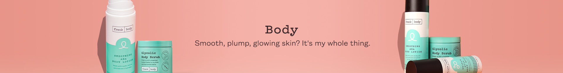 So glad you asked. My Glycolic Body Scrub has sold out five times, because it targets KP, chicken skin, body pimples, and the marks they leave behind. Same with my Smoothing AHA Body Lotion and Triple Acid Body Wash and Body Mist, harnessing the power of glycolic acid, lactic acid, salicylic acid and PHA for a clearing active bump-busting blend.
