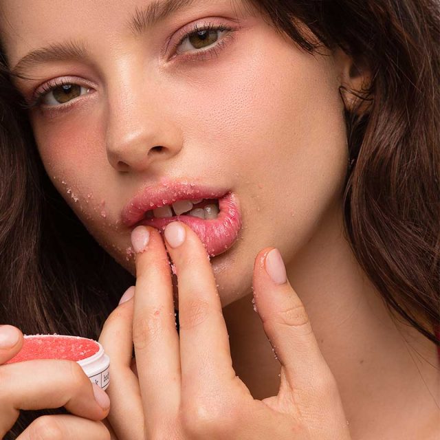 Buff my cherry lip scrub directly onto dry lips in gentle circular motions for 30 seconds or until lips feel smooth.