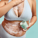 Use my Glycolic Body Scrub in the shower. Scoop out a handful of scrub and massage it into your skin using circular motions. Give extra love to areas that want special attention. Think scars, marks, lumps, and bumps.