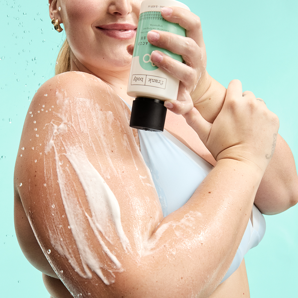 Get nude, get wet, and lather my Triple Acid Body Wash all over your body. Massage me in (and take a beat to let me work my magic) then rinse me thoroughly. Avoid contact with eyes and broken skin.